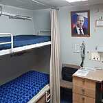 Нам удалось побывать на данном корабле и своими глазами увидеть условия службы военных моряков. Команда проживает, в основном, в двухместных каютах, но встречаются и четырехместные. Подъем в 6 утра, отбой в 22.00. Меню на корабле самое разнообразное, начиная от традиционных макарон по-флотски, заканчивая куриным крем-супом (мы сбились со счета, но блюд точно более 20). В холодильнике свежие овощи, хлеб пекут самостоятельно.