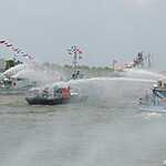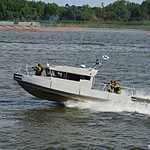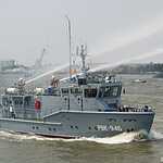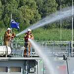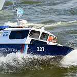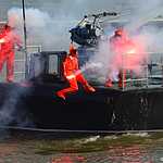 Свои навыки продемонстрировал спасательный отряд катеров службы поисковых и аварийно-спасательных работ. По тактическому замыслу корабль получает серьезные повреждения, в следствии чего на борту начинается пожар. С поврежденного корабля был передан сигнал бедствия. Для оказания помощи к месту ЧП следует рейдовый буксир РБ-33. В то же время личный состав аварийного судна ведет борьбу за живучесть, пытаясь справится с возникшим пожаром, но пожар становится необратимым, и командиром корабля принимается решение о покидании судна. Одевшись в спасательные гидротермокомбинезоны, экипаж покидает аварийный объект. Для ликвидации пожара задействуют рейдовые водолазные катера, которые при помощи лафетных стволов начинают тушение пожара. На помощь к покинувшему судно экипажу спешат многофункциональные модульные катера СМК 2100 СМК 2102 . Спасение экипажа корабля, находящегося в холодной воде, происходит с использованием быстроходных лодок.