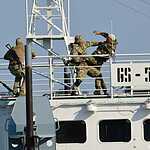 Катер проекта «Чибис» с сотрудниками спецназа на борту подходит к судну для освобождения от террористов. Пограничный спецназ высаживается на борт захваченного судна, завязывается рукопашная схватка. Благодаря уверенным и слаженным действиям, неоднократно применяемым в практике по борьбе с браконьерами и террористами, пограничный спецназ подавляет сопротивление противника. Пограничники освобождают ходовую рубку и экипаж судна. В завязавшейся схватке враг терпит поражение, пограничный спецназ спускает браконьерский флаг. На судне взвивается флаг Российской Федерации!