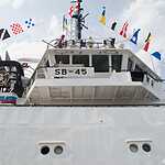 Над пограничным катером проекта «Ламантин» развивается флаг береговой охраны пограничной службы ФСБ России. Основные задачи подразделений береговой охраны заключаются в защите национальных интересов в морском пограничном пространстве и обеспечении благоприятных условий для осуществления законной экономической, промысловой и иной деятельности. Корабли и катера береговой охраны ходят под флагом, представляющим собой прямоугольное полотнище светло-зелёного цвета, перекрещённое диагональным синим крестом с белой каймой.