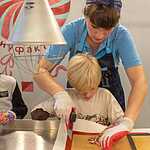Главной изюминкой, для тех кто посетил самое сладкое место на ВДНХ во время акции День без турникетов, стал мастер-класс для детей и взрослых. На этом увлекательном занятии каждый желающий под руководством мастеров карамельного дела своими руками создал по клубничному леденцу.