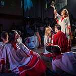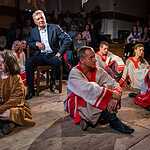 В этот особый для театра «Сфера» день — день 90-летия Екатерины Ильиничны Еланской на сцену вышла практически вся труппа театра, включая режиссера, народного артиста России Александра Коршунова. Актеры вышли для того, чтобы открыть свое сердце и произнести очень сокровенное объяснение в любви, вспомнить ее спектакли: «Маленький принц», «В лесах и на горах», «Доктор Живаго», «Театральный роман». Звучали стихи, песни, слова из ее книги, и все было пропитано ее духом, настоящим духом Живого театра, наполнено общением от души к душе, от сердца к сердцу.