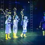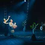 «Третий поцелуй повис в воздухе. Может быть в воздухе висит много-много невидимых поцелуев. Висят они себе и висят. Эти слова из “Птишки” передают то самое неуловимое настроение всего спектакля, а может быть и всего театра, актёров и главного волшебника, Владимира Панкова. Герои сказки смотрят на окружающий мир широко раскрытыми глазами, любят и переживают на 100%, очень трепетно относятся к чудесам, что обычно совершенно несвойственно взрослым. Все в спектакле живет по законам волшебного сказочного мира. Поэтому и деревья здесь живые, каждое со своим характером. Они могут общаться между собой, выражать восхищение птичьими трелями, улыбаться самозабвенному кваканью лягушек, нежно шевеля своими кронами, а могут даже найти и протянуть путнику его потерянный бинокль.