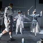 Выбор Коли обрекает его на то самое «одиночество с дремучими инстинктами в крови». На сцене появляются многочисленные персонажи: роботоподобные одноклассники в белоснежных шортах с прилизанными волосами, учительница пения, похожая на механическую куклу с приклеенной улыбкой, физрук с жестокой ухмылкой и нашатырем «Вставай, блин, че, слабый такой?». Образ бабушки достоин особого внимания. Похожая на космонавта в скафандре с покрасочным валиком в руке, каждым своим железным шагом она вколачивает в своего внука истины бессмысленной и безнадежной жизни. Машина подавления, говорящая голосом Дарта Вейдера: «Много хочешь, мало получишь!». В самом конце пьесы Коля кричит ей в лицо: «все бросали тебя, потому что ты урод и любить тебя невозможно!»