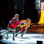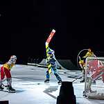 Как вы знаете, в каждой стране, где труппа бывает с гастролями, есть какая-нибудь определенная «фишка», которую создатели ненавязчиво внедряют в программу. В этот раз без «пасхалки» тоже не обошлось. В номере на хоккейной коробке Кристал появляется в российской форме с триколором и гербом.