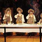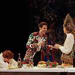Максим Обрезков сделал все замечательные костюмы и бутафорию. Холодец, оливье, селёдка под шубой, колбаска, всё это пластиковое, но выглядит изумительно. Паркет сохранился со времён Юрия Любимова, когда он ставил здесь свой спектакль «Бесы». Его не выкинули, не отвезли к себе на дачу, этот легендарный паркет пригодился в спектакле. Мы люди театра очень сентиментальные, для меня это важно.