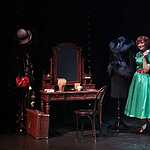 Художник-постановщик Максим Обрезков, задействовав игру плоскости с объёмом, видео-эффекты и постоянную смену костюмов (многие из которых являются своеобразными фетишами, как например, черное платье с белой пушистой муфтой из “Карнавальной ночи”), смог уместить на сцене и довоенный Харьков, и гримерку актрисы, и даже светящуюся лестницу-каскад, которую, наверное, можно считать тем самым Олимпом, местом обитания богов, и на который, девочка из Харькова, Люся Гурченко, сумела взойти.