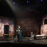 С самого начала в спектакле звучит патетическая музыка, как внутренний фон всех присутствующих. И только она может заглушить боль страх, мысли о близких, непонятную тревогу, разбуженную предсказаниями. Видения Фанни сопровождает мистический туман, странный холодный свет и нарастающий низкочастотный звук. Он хорошо слышен зрителям. Мы чувствуем его давление и не можем его игнорировать, потому что знаем, что будет дальше. А в головах наших героев звучит Бетховен, символ высокой и чистой цели, оправдывающей любые средства.