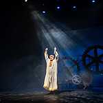 В этом спектакле простая и ясная идея сопряжена с поэтичностью и изяществом исполнения. Вот свою последнюю трагическую пьесу о собственной смерти разыгрывает «великий артист» Нерон. Едва живой, бомжеватый и больной, но по-прежнему мачо с автоматом — генерал из «Осени патриарха» Маркеса влачит свою жалкую жизнь, пока смерть не настигает его. Верховенский в семейных трусах и одном дырявом носке готовит речь об идеальном общественном устройстве. Его слова как будто написаны не 150 лет назад, а совсем недавно: «Всякий член общества смотрит один за другим и обязан доносом. Все рабы и в рабстве равны. Первым делом понижаем уровень образования, наук и талантов». Ничего не напоминает?