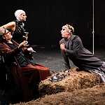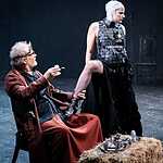 Второе действие построено на контрасте с суетой и балаганом, царившими в начале, и протекает в совершенно ином ключе. Выполнив свою миссию, Ромул готовится встретить свою смерть. Вместо этого, в лице германского князя Одоакра он встречает равного собеседника, свое отражение. Они очень быстро находят общий язык. Их диалог на курином языке – замечательная находка режиссера! Неожиданный поворот сюжета раскрывает перед двумя правителями перспективу будущего, которого они оба старались избежать: «Мы надеялись освободиться от мира, ты от Германской империи, я от Римской, а теперь придется приводить в порядок их развалины. У нас есть власть лишь над настоящим, но мы о нем не думали и потерпели крах. Будем вести себя, словно расчеты наши оправдались, словно дух взял верх над человеческой плотью».
