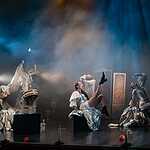Первым делом автор ставит нам зеркало и предлагает увидеть себя, свое время и место среди этих странных героев. Среди них возвышенные, одухотворенные, почти небесные царь и царица, а также вполне земные вельможи. Тут же внушающий кому-то страх, кому-то любовь Григорий Распутин, прочно завладевший волей царя. Рядом былинник и шут, олицетворяющие простой народ и его голос. Бросается в глаза контраст между высокими речами царствующих особ и «гласом народа» – грубыми разухабистыми частушками. И дальше этот общий контраст только нарастает. Распутин все больше старается занять место принимающего государственные решения, оградить царя от земных проблем. Кажется, он хочет сделать царскую семью небожителями. Остается с грустью отметить, что это ему удалось. Но это произойдет уже за рамками описанных в спектакле событий, после их мученической смерти.