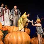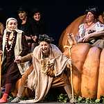 Декорации просто бесподобны. То ли на сцену притащили огромные тыквы сочного оранжевого цвета, то ли саму сцену перенесли на грядки под упоительное полуденное украинское солнце.