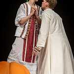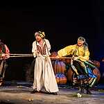 Вместе они как будто пытаются разбудить, раскачать жителей, населяющих гоголевские страницы. Постепенно на сцену подтягивается население Диканьки, и начинается вакханалия. Нарастает предвкушение праздника. В воздухе разливается дух приближающейся ярмарки, смешения красок, культур, языков, музыки, танцев.