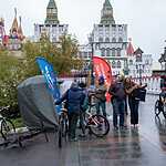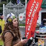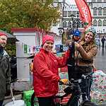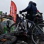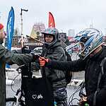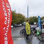 Трезвые мужчины и женщины собрались вместе ради популяризации самого здорового и экологичного вида транспорта. Шёл моросящий дождь, но это никого не останавливало. Волонтёры расположились на девяти энерготочках в разных частях столицы, чтобы с 8 до 11 утра вручать угощения и сувениры энтузиастам, которые едут на работу на велосипеде.