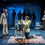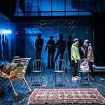 Мне кажется очень интересной музыкальная и пластическая линия спектакля. Когда не хватает слов, музыка и движение лучше всего передают чувства, внутреннее состояние. Мот танцует. И этот танец передает весь надлом, происходящий у него внутри. Выход членов семьи происходит под музыку, они шагают в едином ритме, как будто запрограммированы на некие ежедневные повторяющиеся действия.