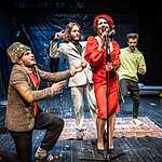 Исполнитель главной роли Павел Комаров несет на себе львиную долю эмоциональной нагрузки. Это почти моноспектакль. Один длинный монолог с небольшими репликами остальных участников. Мот часто берет микрофон, видимо, чтобы усилить внутренний крик, вопль души. Остальные роли как будто нанесены легким штрихом и проходят как тени в воспоминаниях главного героя. Несколько ярких пятен – любовница отца тетя Лена в красном платье и дед, комический персонаж, разговаривающий то с телевизором, то с покойными друзьями. Сестра Катя – единственный взрослый, понимающий и принимающий Мота. Если Лиза помогла мальчику прочувствовать и прожить свою огромную боль, то Катя – тот человек, рядом с которым Мот в дальнейшем мог бы вернуться к жизни из своего буддийского молчаливого небытия.