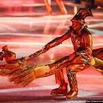 В мюзикле множество массовых сцен, которым хочется в такт аплодировать. Все костюмы безукоризненны, красочны. Несколько раз на середину льда выезжает шикарный пьедестал с троном.
