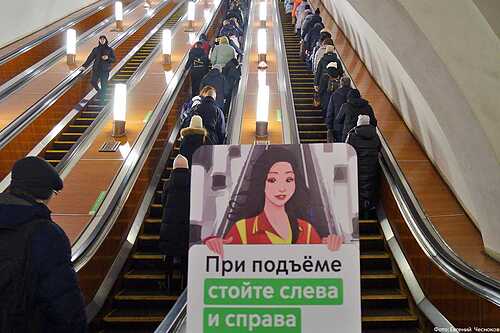Очереди к эскалаторам Московского метрополитена можно уменьшить. Захотят ли пассажиры прислушаться к совету девушки на плакате?
