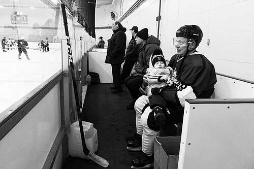 Хоккеист во время 5 минутного удаления за драку держит на руках своего сына