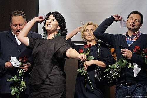 Ведущий вечера Павел Любимцев поздравил маститых выпускников «Щуки», а память ушедших за минувший год коллег собравшиеся почтили минутой молчания.