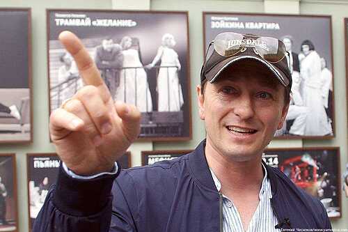 В Камергерском переулке к студенческой экскурсии присоединился художественный руководитель фестиваля «Фабрика Станиславского» Сергей Безруков.