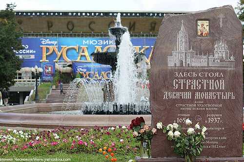 Храмы Страстного монастыря разрушили и на площади построили кинотеатр «Россия».