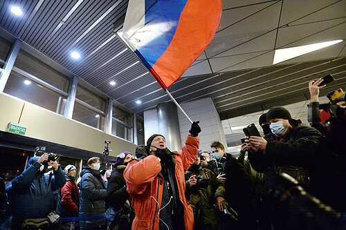 Несколько сотен сторонников оппозиционера Навального ждали его возвращения в аэропорту Внуково.