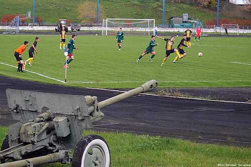 На историческом футбольном поле играет команда «Спортакадемклуб».
