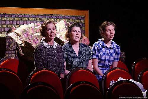 Первая шокирующая деталь – режиссёр разместил актёров спектакля «Московский хор» не на сцене, а в зрительном зале.