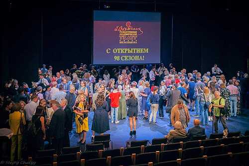 После летних каникул театр имени Вахтангова открыл свой девяносто восьмой сезон. Сбор труппы традиционно начался с поздравления юбиляров.